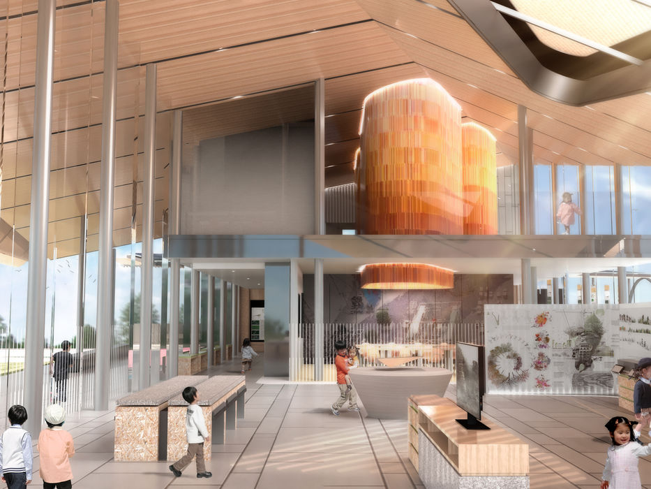 屋頂設計概念為雀鳥翅膀展翅高飛的樣態, 此設計型態同時考量到過濾夏季時西南面的陽光,降低吸熱量;